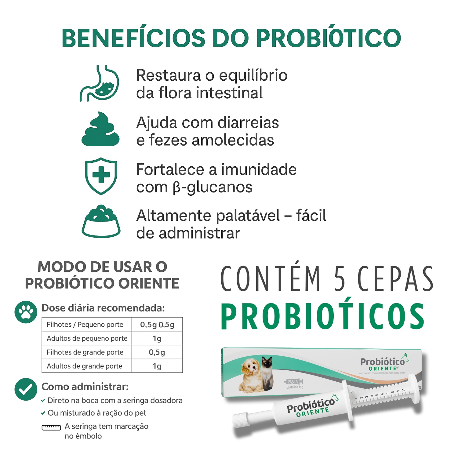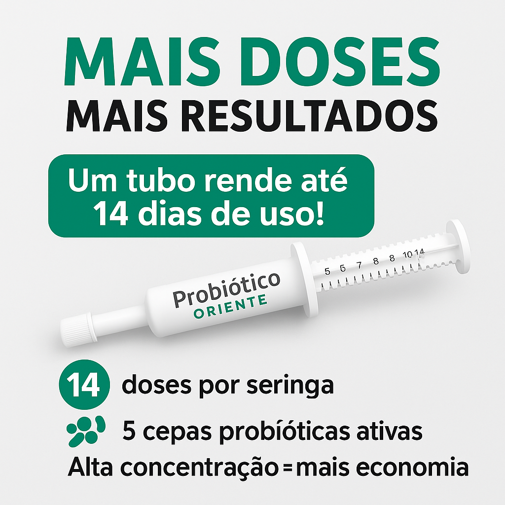O Probiótico Oriente é o suplemento probiótico para cães e gatos com melhor custo-benefício do mercado. Fórmula concentrada, 5 cepas probióticas, rendimento superior e resultados comprovados. Ideal para quem busca um produto seguro, eficiente e desenvolvido por um laboratório com tradição em saúde animal.